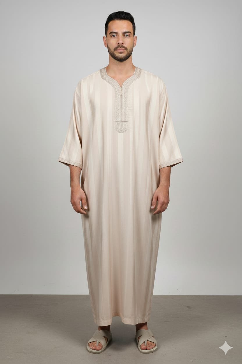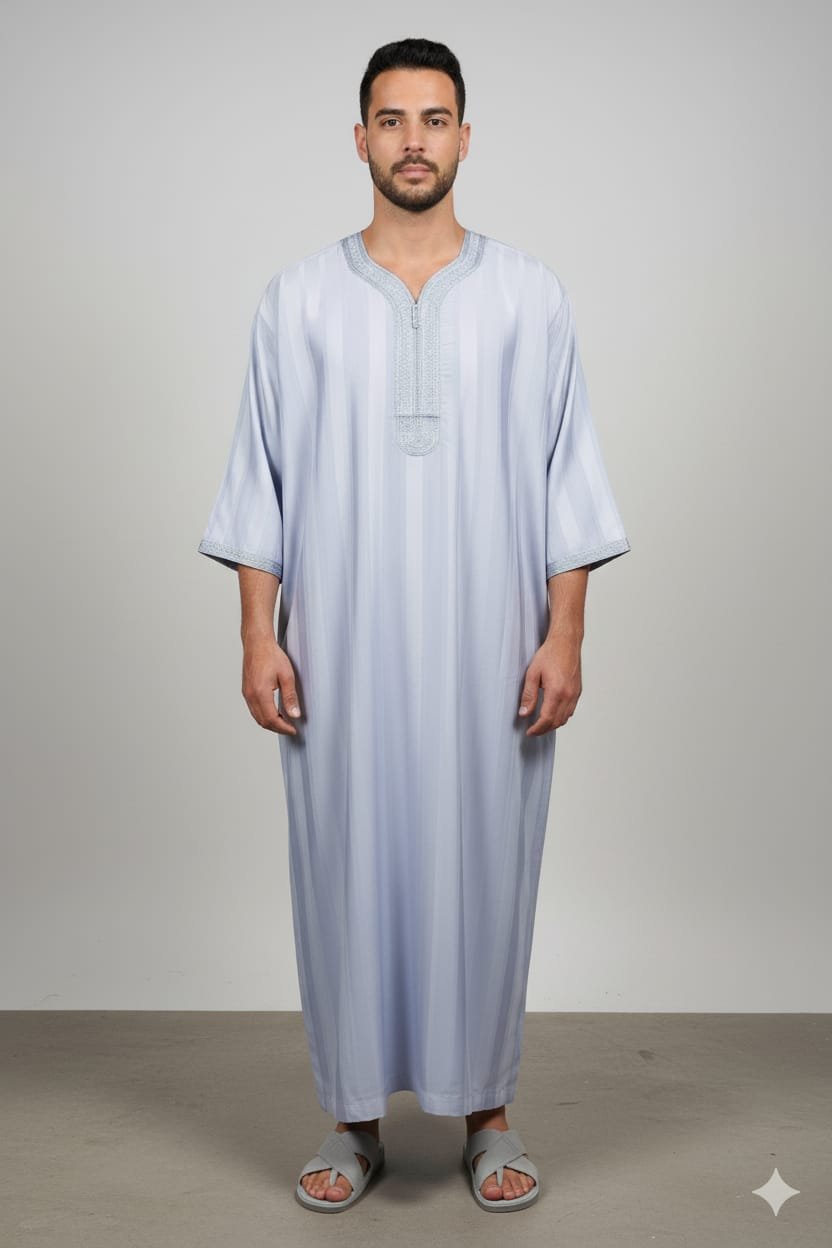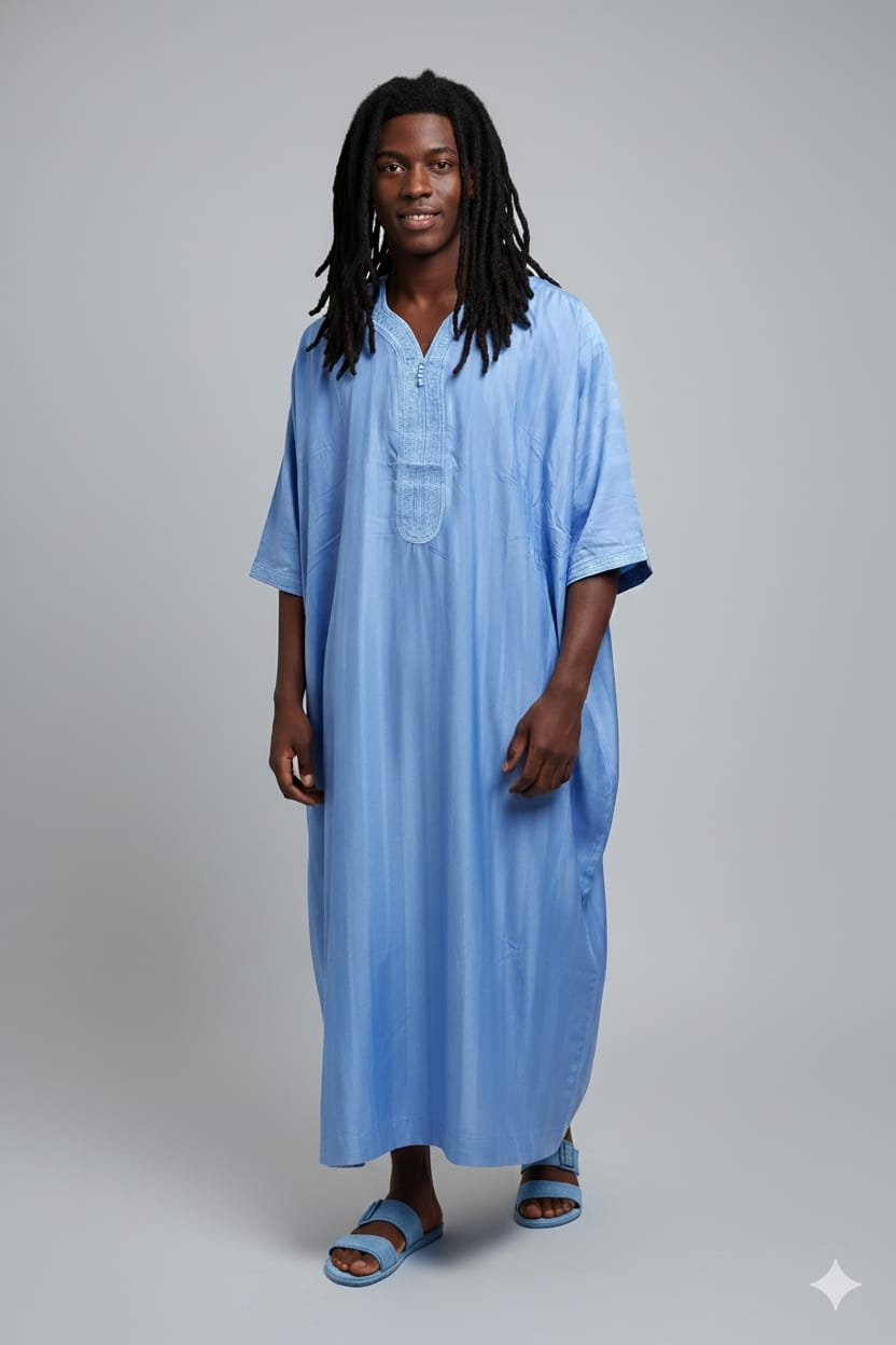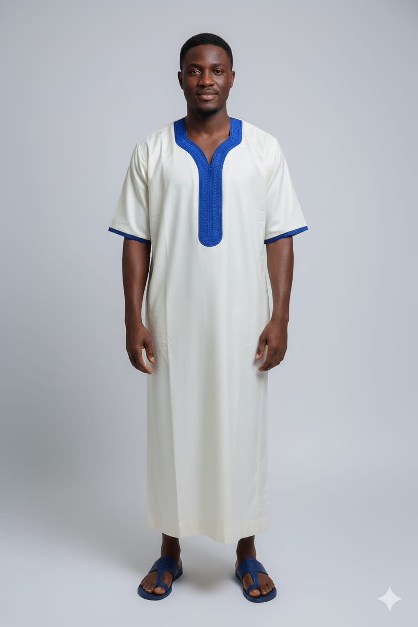 Découvrez l’élégance intemporelle de la Gandoura Jawhara 1T, disponible en plusieurs coloris raffinés : vert olive, noir profond, beige doré, bleu clair, blanc avec broderie bleue, bleu marine, bleu ciel et vert foncé. Ce modèle allie tradition et modernité grâce à sa coupe ample et fluide, offrant un confort inégalé tout en mettant en valeur un style distingué. Confectionnée dans un tissu léger et subtilement satiné, la Gandoura Jawhara 1T se distingue par ses broderies fines au niveau du col et des manches, symbole d’un savoir-faire authentique.