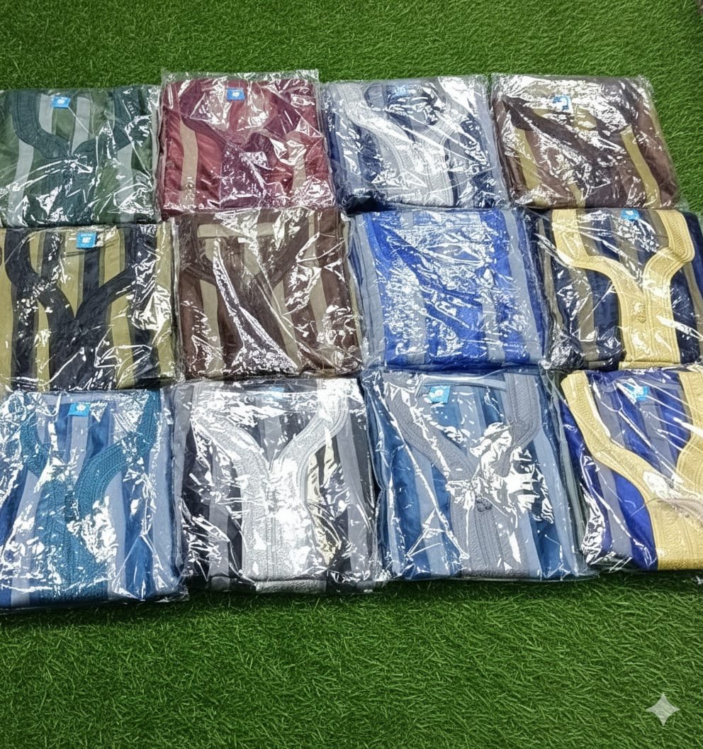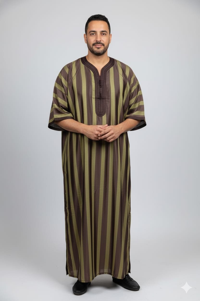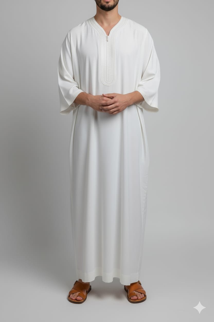 Disponible en plusieurs coloris raffinés : Blanc, Noir, Bleu, Vert, Gris et Marron Olive — chaque modèle est confectionné dans un tissu haut de gamme avec finitions brodées de luxe.