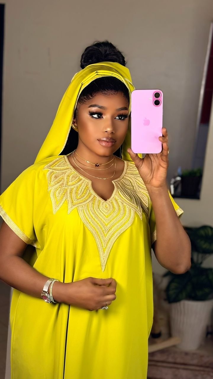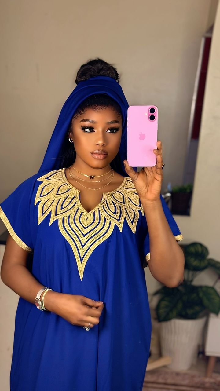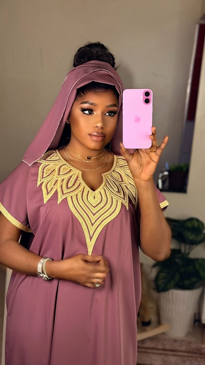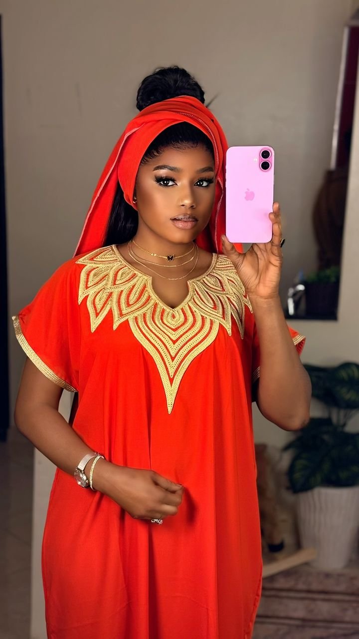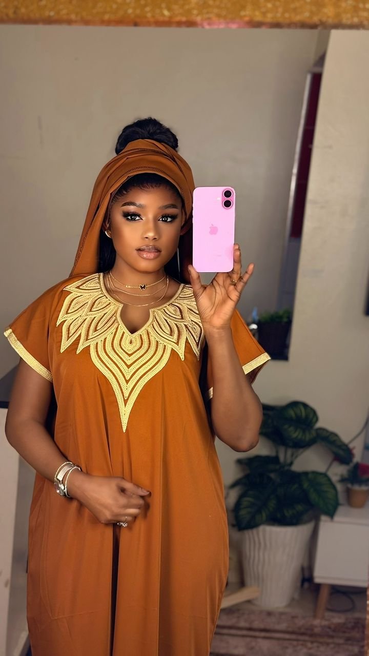 Sublimez votre allure avec ce nouveau modèle de gandoura en crêpe premium, une pièce fluide de taille standard agrémentée de broderies artisanales dorées et accompagnée de son foulard coordonné, disponible dans une large palette de couleurs vibrantes.
