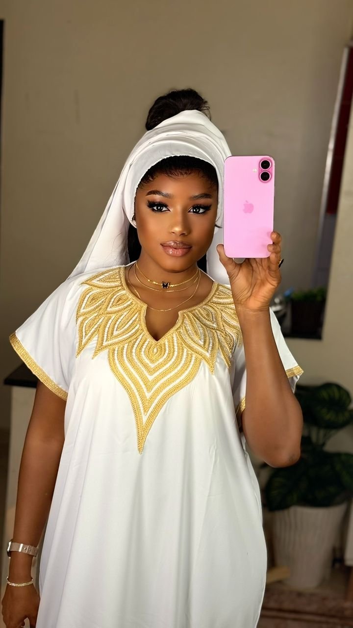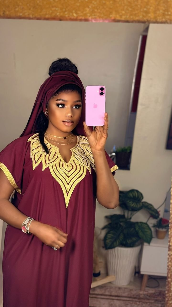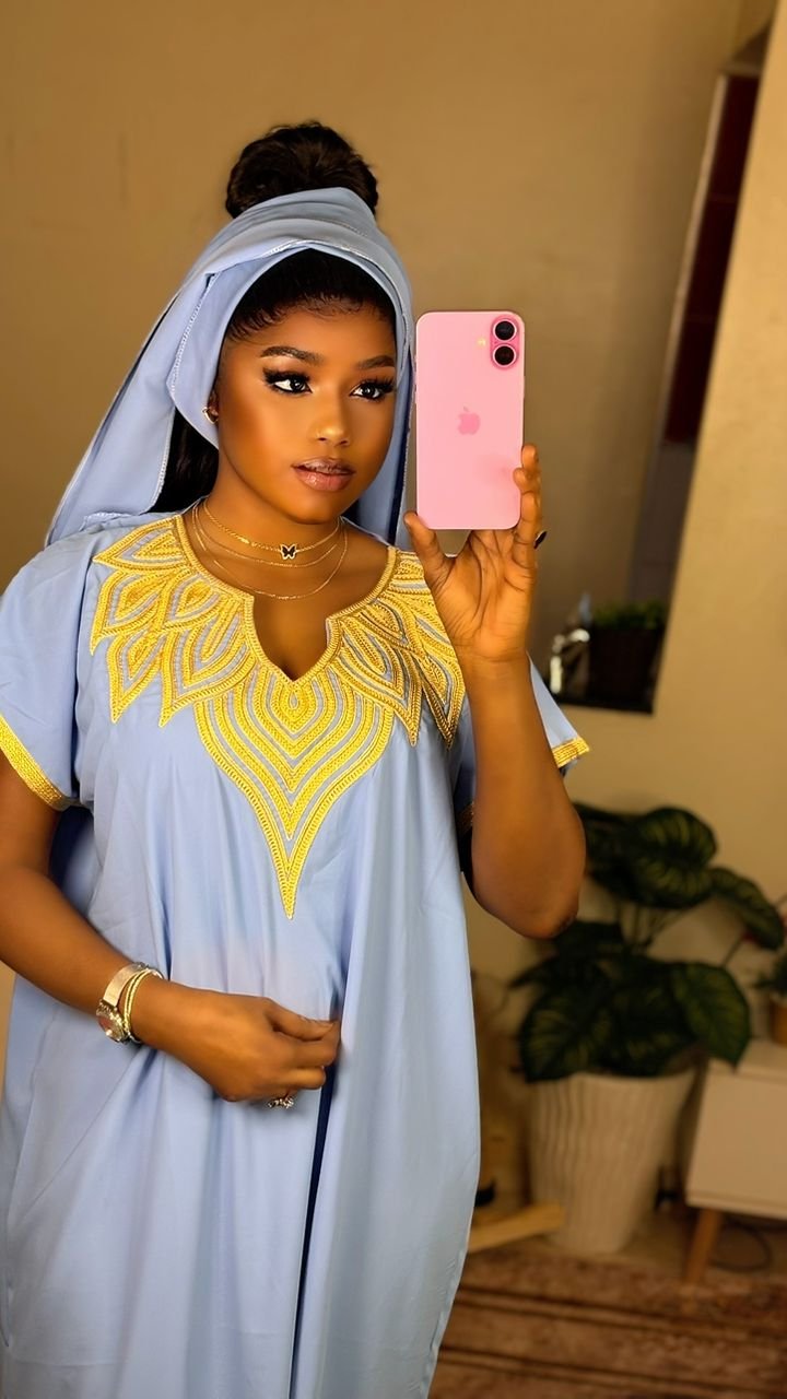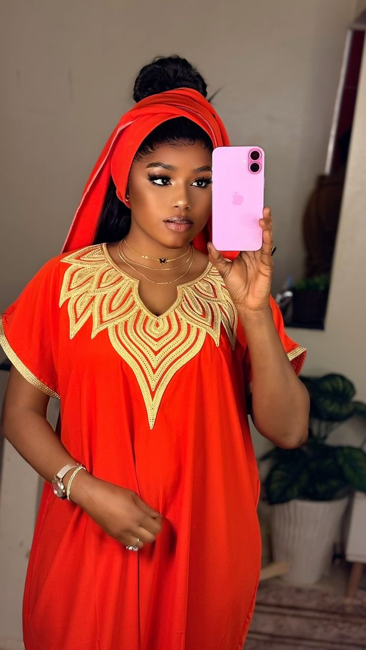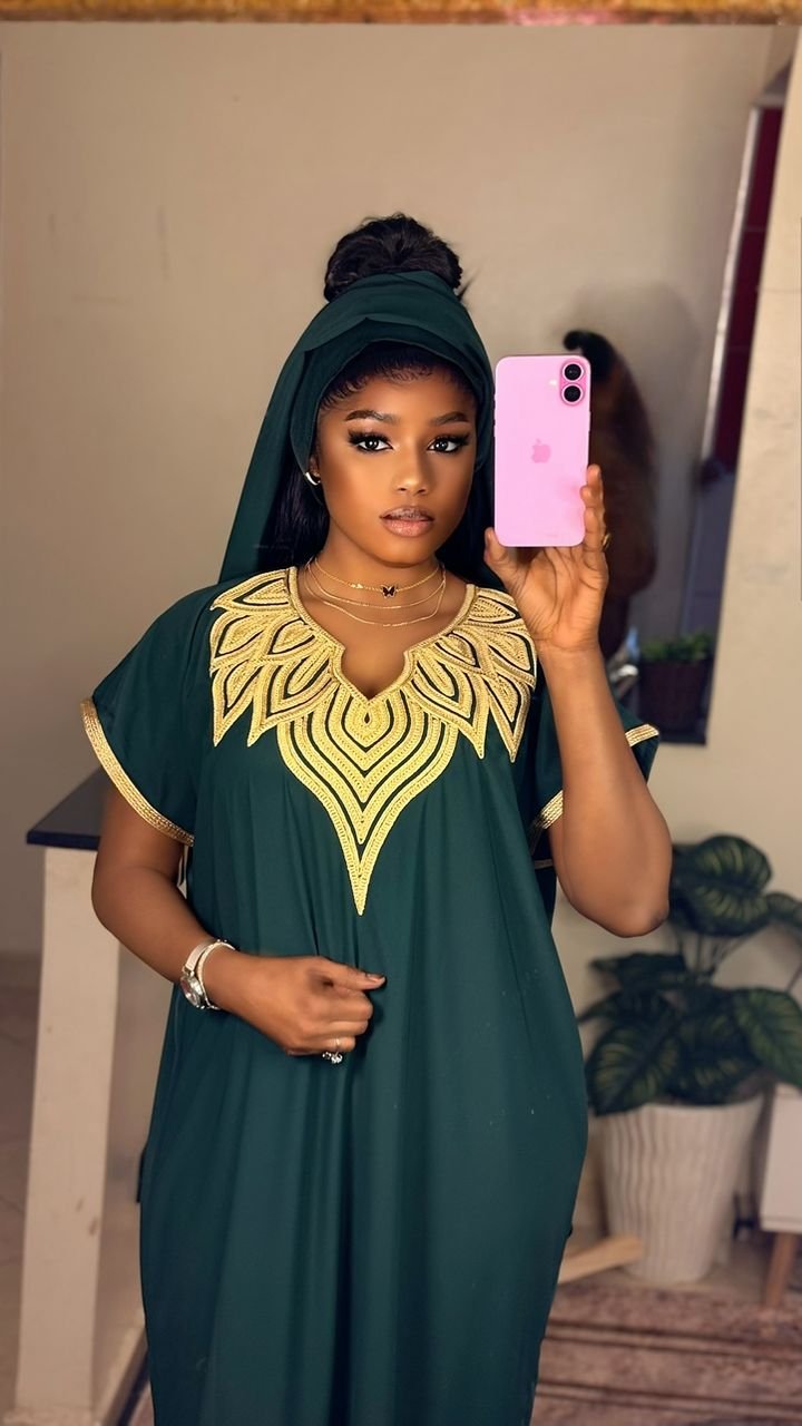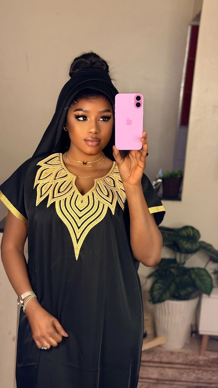 Sublimez votre allure avec ce nouveau modèle de gandoura en crêpe premium, une pièce fluide de taille standard agrémentée de broderies artisanales dorées et accompagnée de son foulard coordonné, disponible dans une large palette de couleurs vibrantes.